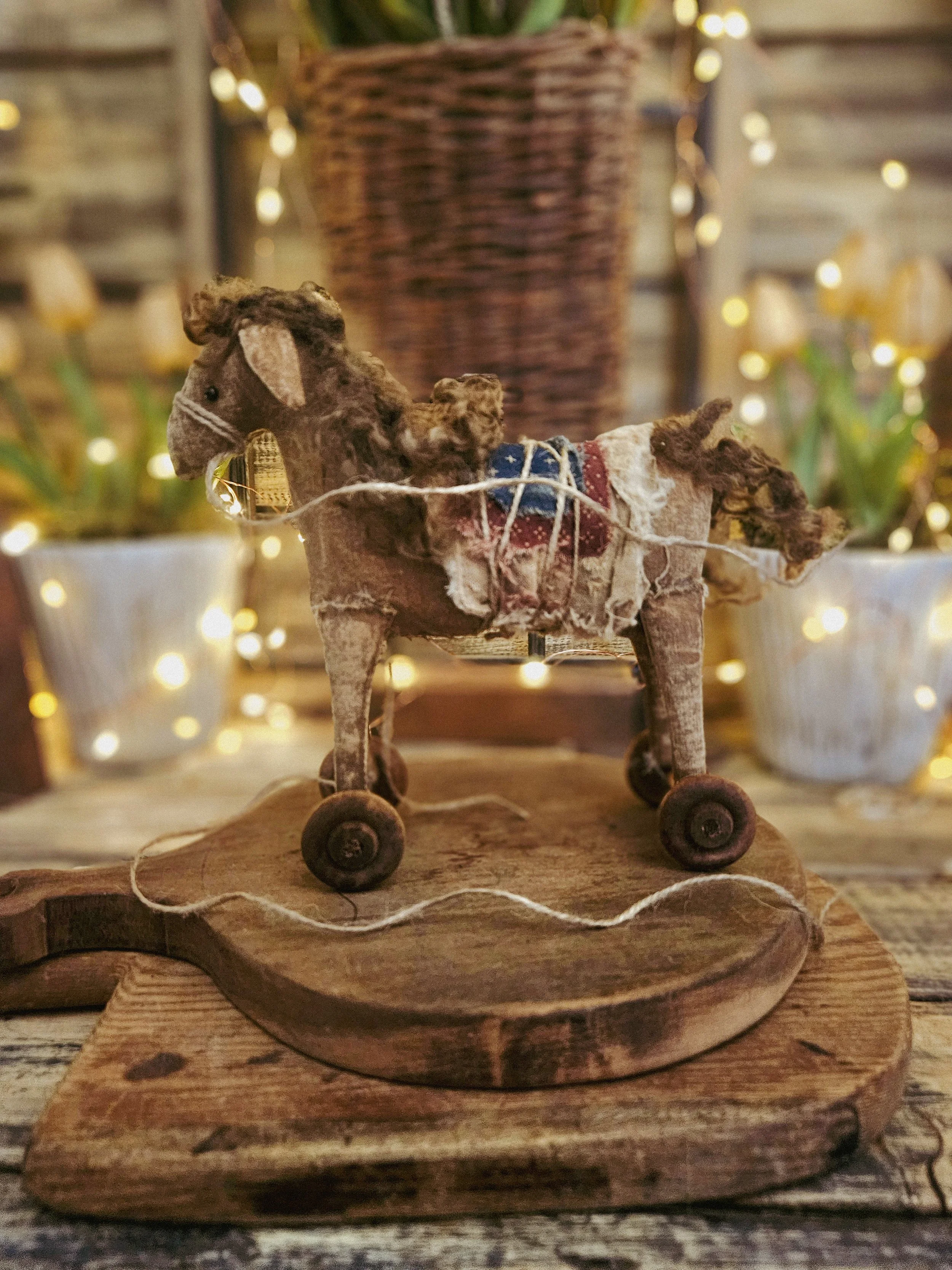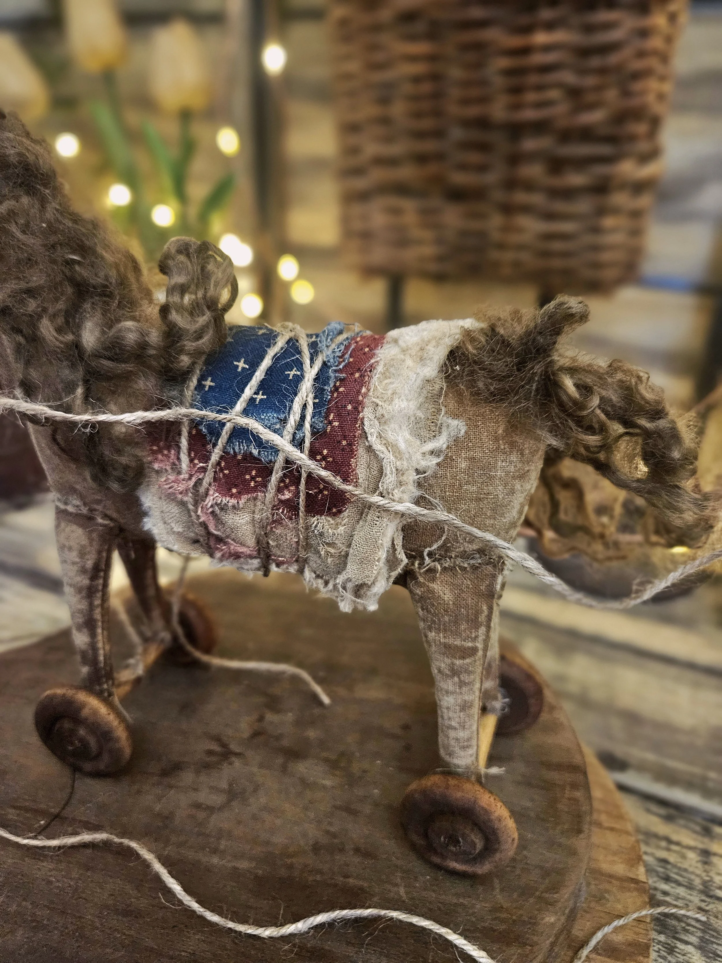 Shop › Horse Pull Toy #2 Horse Pull Toy #2 $48.00 sold out Measures approx 8"x8”Made from an aged material. A piece of a vintage quilt is draped over his back. Wheels do not move Measures approx 8"x8”Made from an aged material. A piece of a vintage quilt is draped over his back. Wheels do not move Get notified by email when this product is in stock. Sold Out Added!