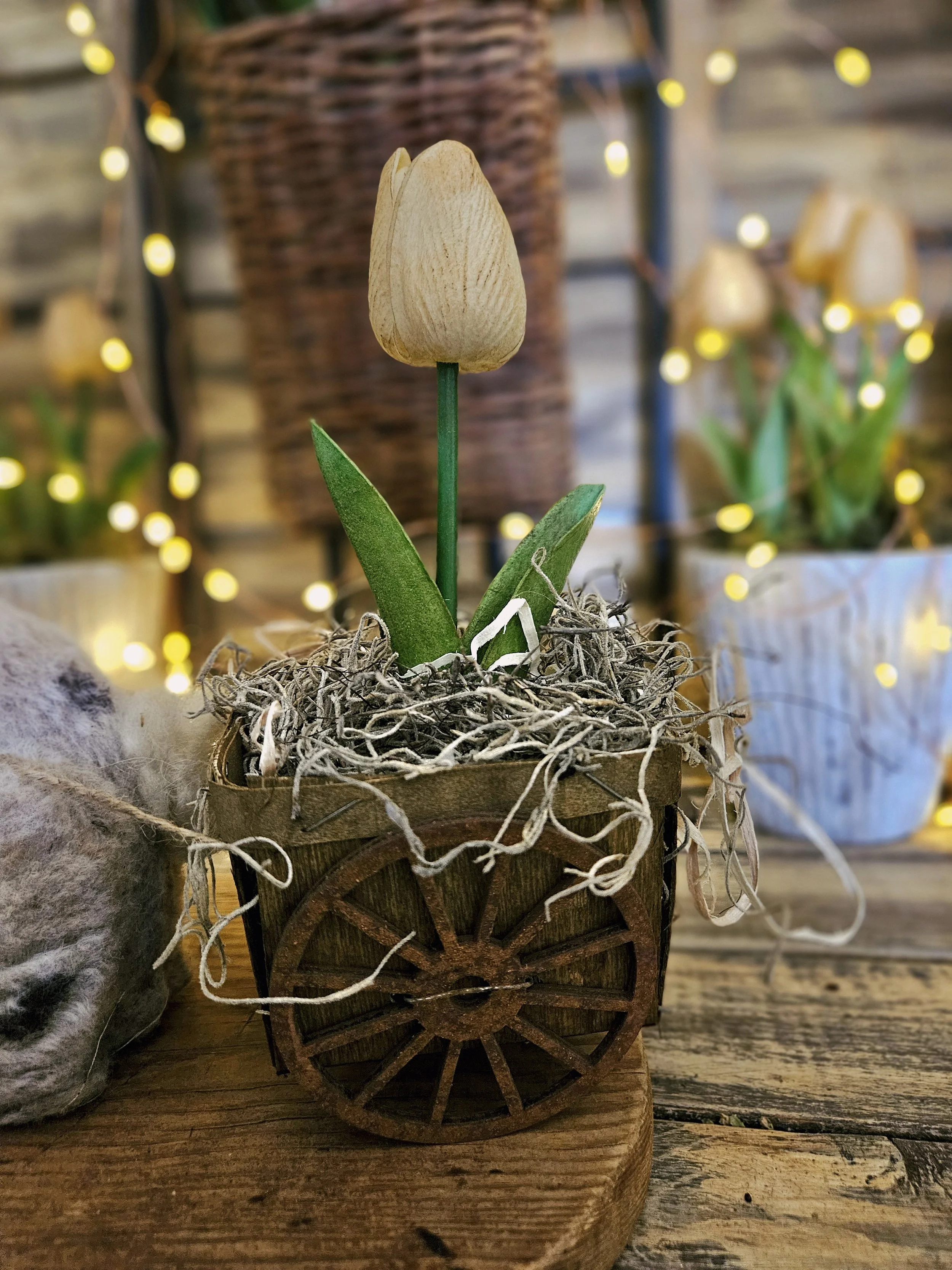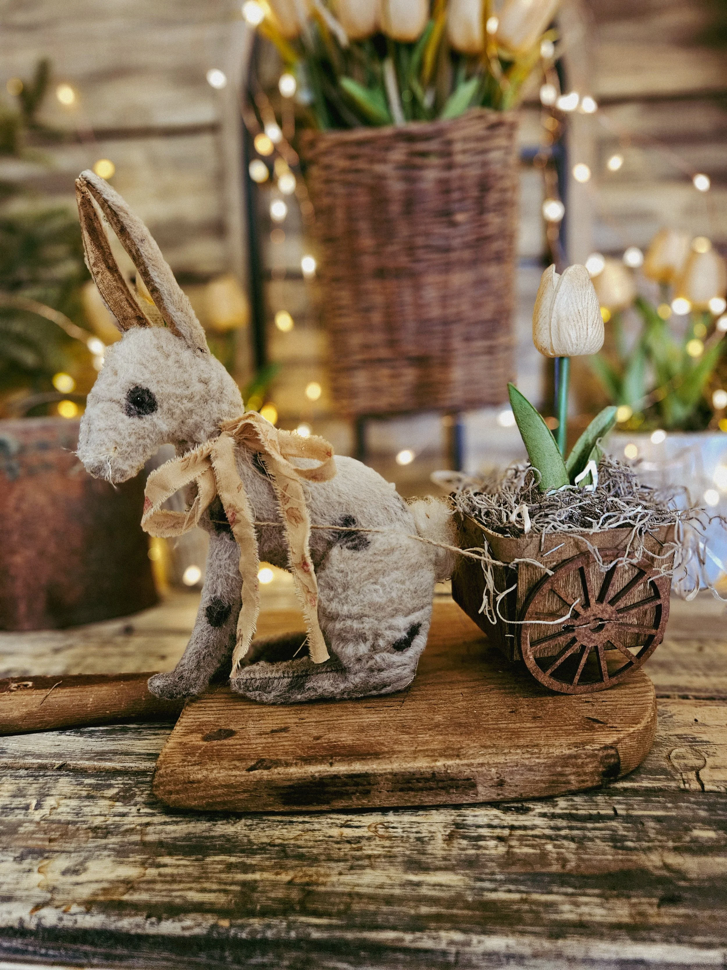He has real glass bead eyes and sisal whiskers with a real wool tail.